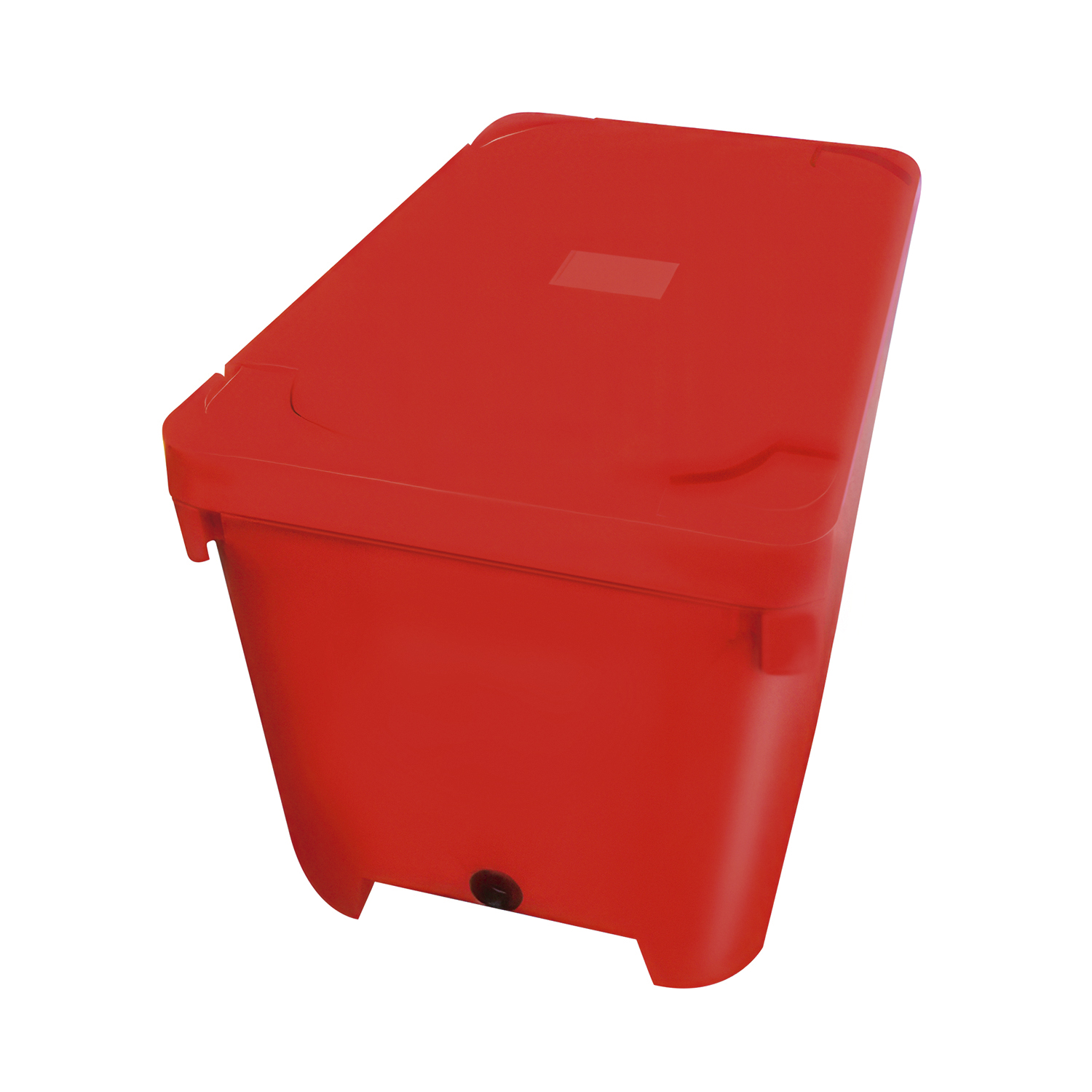 Bin contenedor isotérmico con tapa 350 lts. Fabricado 100% en Polietileno baja densidad lineal. Estructura Mono Block. Espumado en Polietileno 100% Virgen. Estructura con espuma Rígida aislante de Polietileno, densidad 25 Kg/m3. 100% Sanitario e impermeable. Espuma de celdas cerradas lo que no permiten el ingreso de líquidos percolados al interior de las pre cámaras del Bins, por lo tanto su nivel asepsia es muy superior a la espuma de Poliuretano. No contiene Poliuretano que es altamente Toxico. No permite la contaminación cruzada ni contiene productos tóxicos dañinos para la salud. Soportan apilados con tapa de carga 4 bins sin problema. Rango de Temperaturas de 90° a 70° grados C°. No se cristalizan en ambientes fríos gracias a su fabricación de Polietileno baja densidad lineal, Perdida de calor 0,5 grados en 36 horas a 10° C° en medio ambiente. (En casos de rompimiento por mala operación, son reparables sin perder sus características sanitarias y térmicas). Colores disponibles: Rojo, Azul, Verde Musgo, Turquesa, Amarillo, Naranjo, Grafito, Negro, Celeste.
