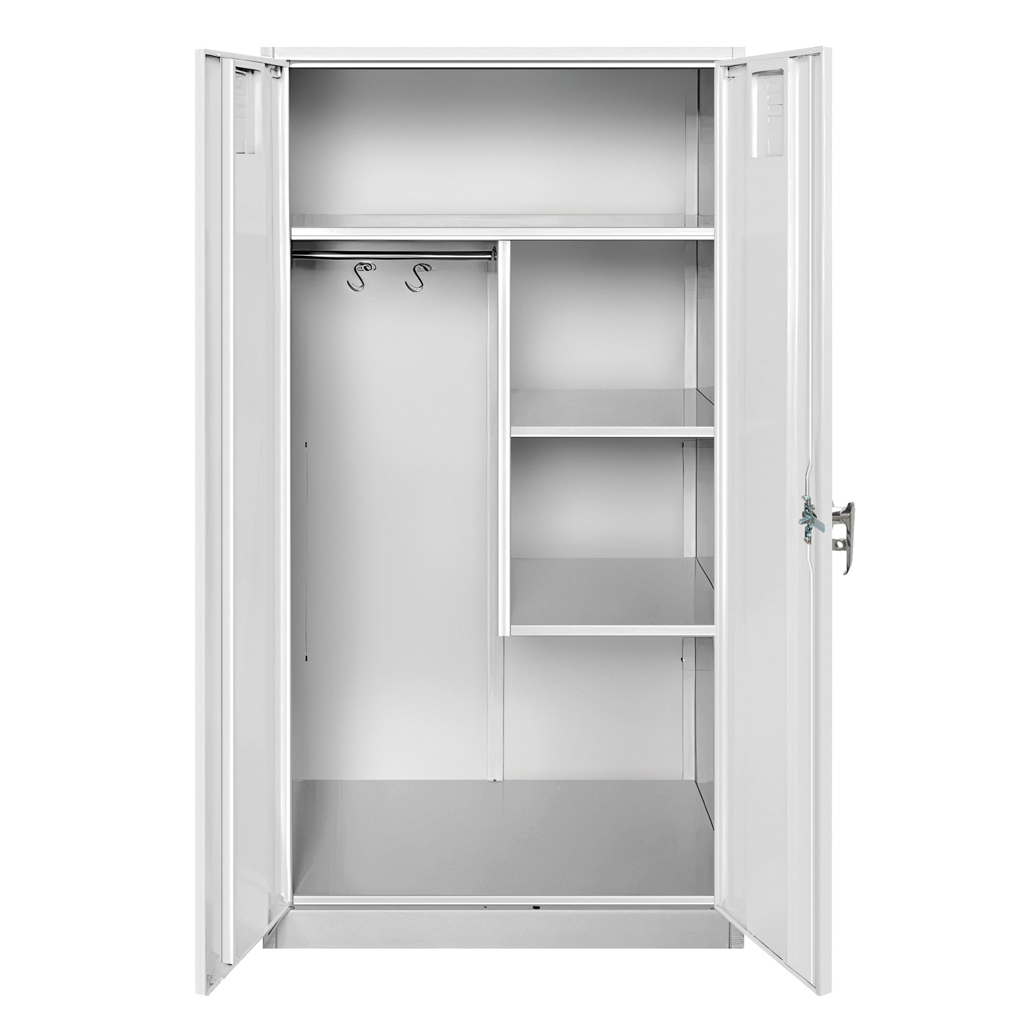 Ropero Armario Metálico de 1 Cuerpo y 2 Puertas: Este ropero armario metálico está diseñado para ofrecer durabilidad y funcionalidad en cualquier entorno. Fabricado con acero de alta calidad de 0.6 mm laminado en frío, garantiza resistencia y estabilidad. Espacio Interior equipado con bandejas, una barra colgadora y ganchos para optimizar el espacio y mantener la ropa y otros objetos ordenados y accesibles. Portacandado con manilla + españoleta, cierre tres puntos. Celosía disponible en cada puerta para su ventilación. Versátil en diversos entornos, como oficinas, dormitorios, vestuarios, entre otros.