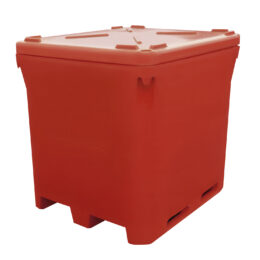 Bin contenedor isotérmico con tapa 1000 lt. Fabricado en monoblock de Polietileno, Piel y espuma Polietileno (PE) espuma de celdas cerradas. Para el traslado, almacenamiento y conservación de pescado, Mariscos, cecinas, cárneos y productos agroindustriales. Polietileno Lineal densidad media Baja, Virgen, Aditivos grado alimenticio, contiene UV. Certificados de uso con alimentos MP aprobado FDA. No contiene productos tóxicos. No Permite contaminación cruzada. Resistencia temperatura mayor 80 C° menor -40 C° (sin cristalizar). Apilamiento con carga 4 a 6 unidades con tapa carga unitaria 800 Kg., apilamiento sin carga 6 a 8 unidades con tapa. Incluye barra de volteo y orejas de izaje, Perforaciones para sello y uso de cierres. Entradas para grúa horquilla o transpaleta. (Capacidad 1000 lt, 1.050 lt. a tope, Carga unit. 1.250 Kg.)