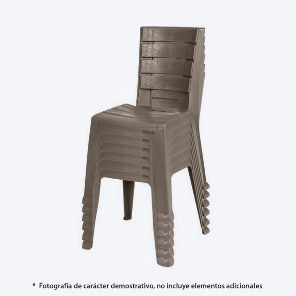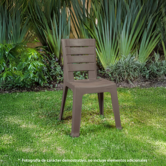La Silla Rimax de apariencia madera es simple y elegante, inspirada en una textura natural que transmite tranquilidad, relajación y armonía, lo que la hace que sea el complemente ideal para el espacio de tu casa u oficina. La silla está fabricada en plástico resistente al agua y que permite una mayor duración del producto, además soporta un peso máximo de hasta 115 kg.
